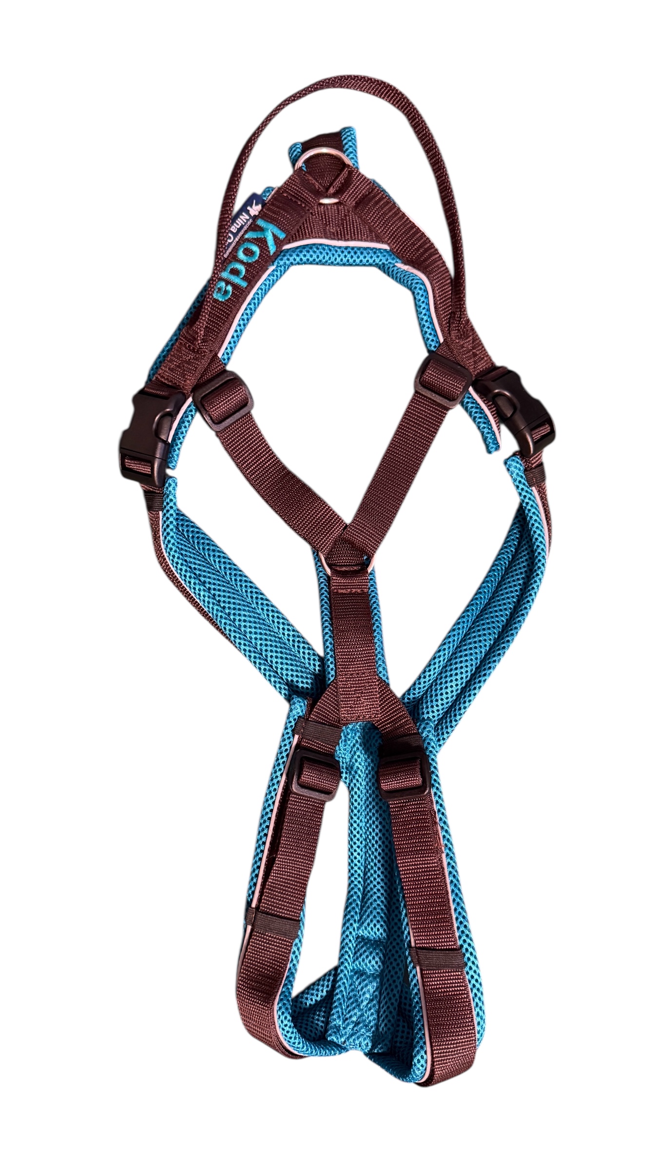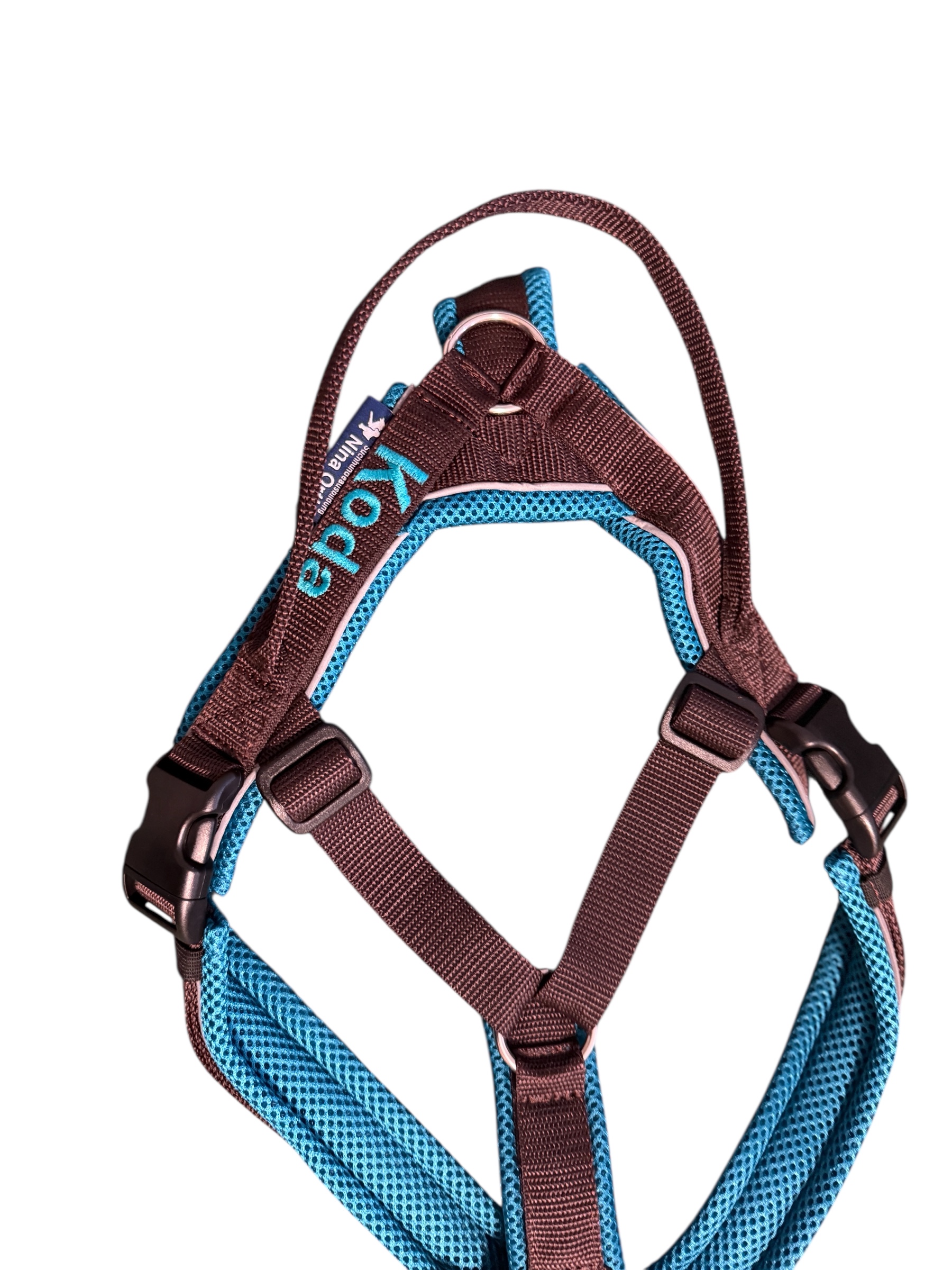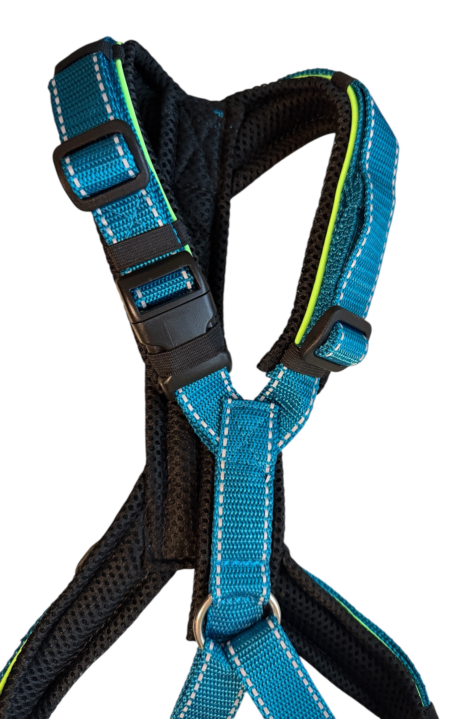 • durch die Rückenkonstruktion verrutscht das Geschirr weniger, auch bei seitlichem Zug (wie am Fahrrad zum Beispiel)